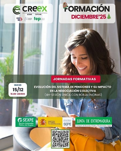 Ahora tienes la oportunidad de formarte en una sesión única sobre la evolución del sistema de pensiones y su impacto en la negociación colectiva, de la mano de Borja Encinas, Doctor en Economía y Profesor de la Facultad de Ciencias Económicas y Empresariales de la UEX.